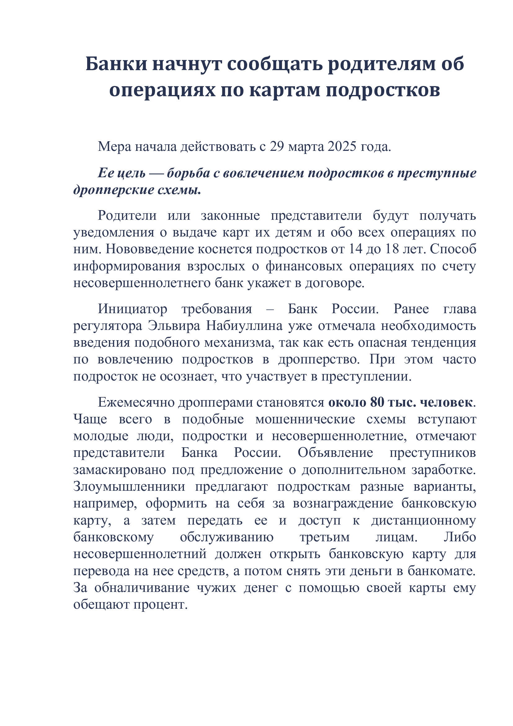 Банки начнут сообщать родителям об операциях по картам подростков